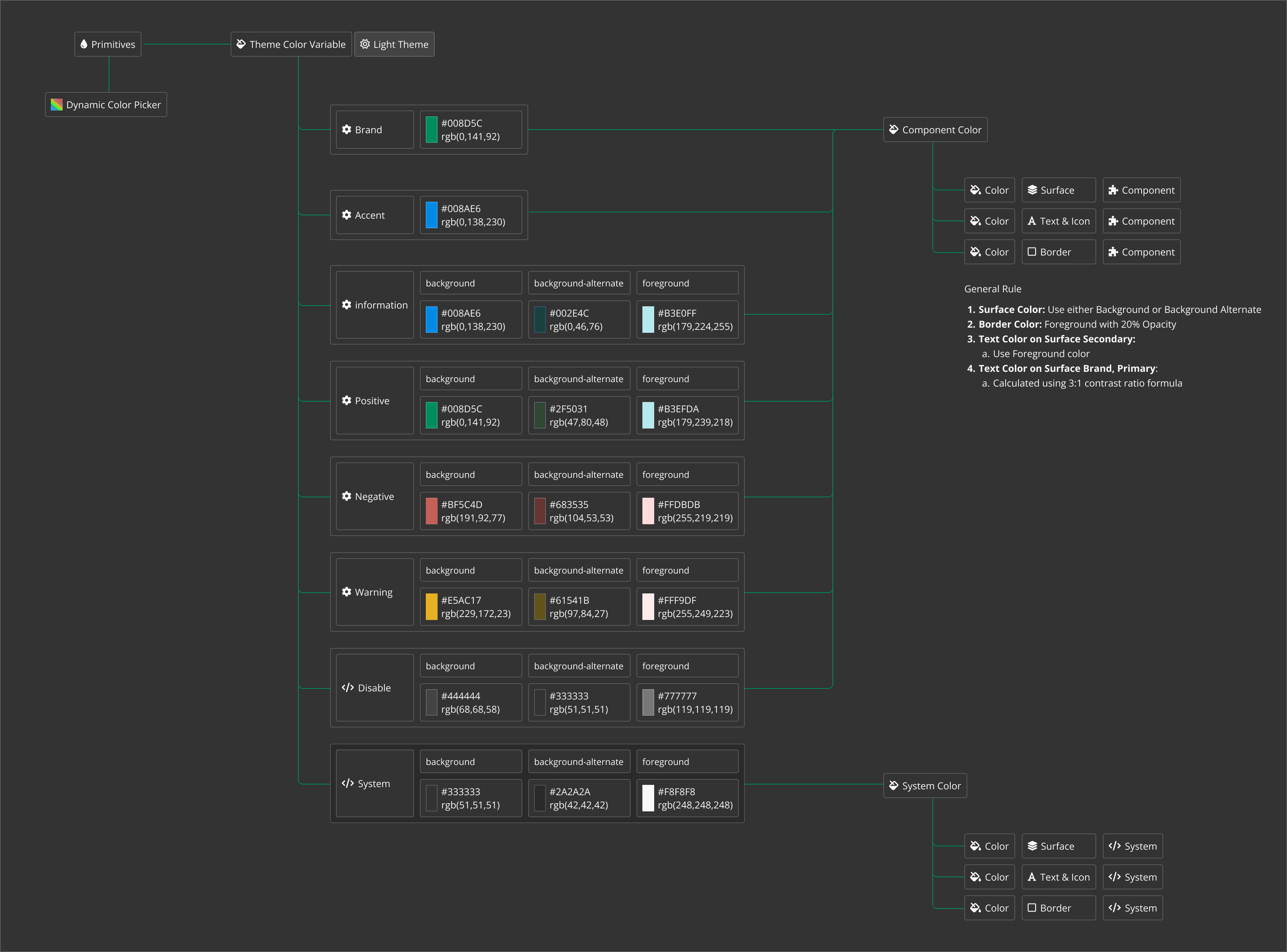 Instead of asking clients to pick a "secondary" or "subtle" color, the system generates them using alpha channels: