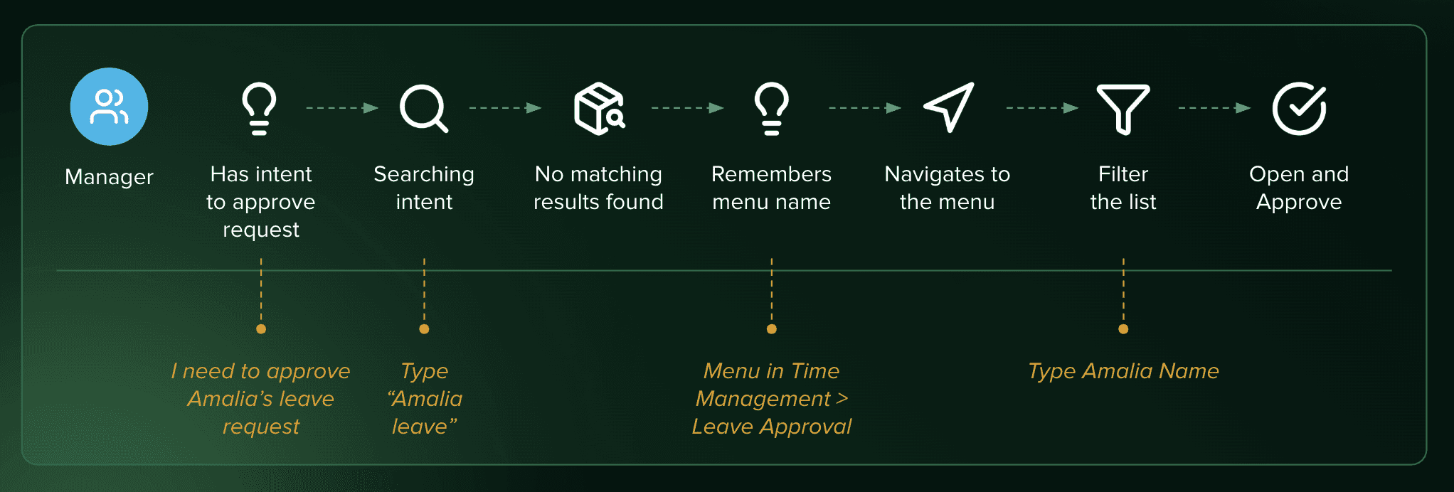 The current user’s search journey example (managers POV)