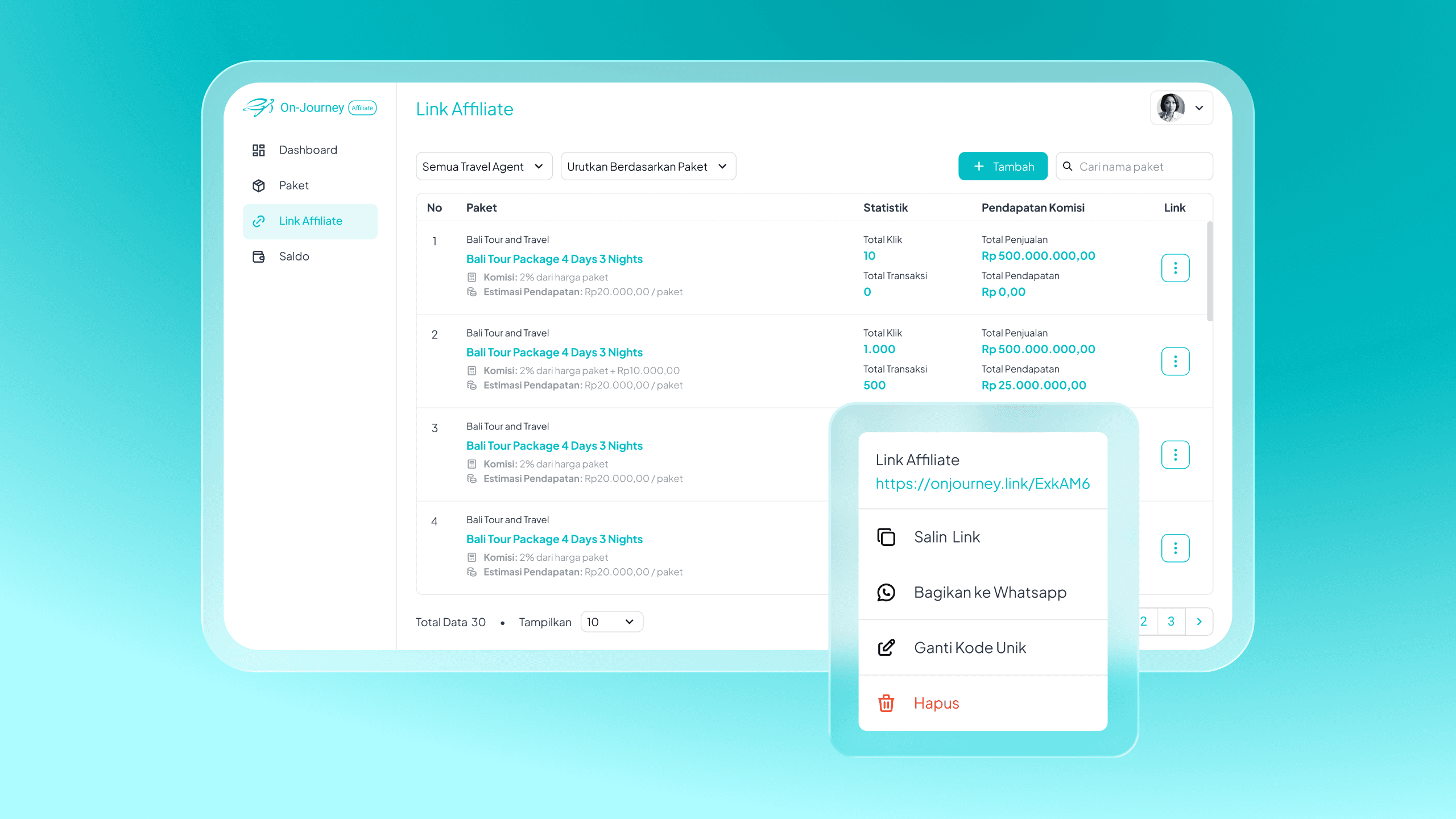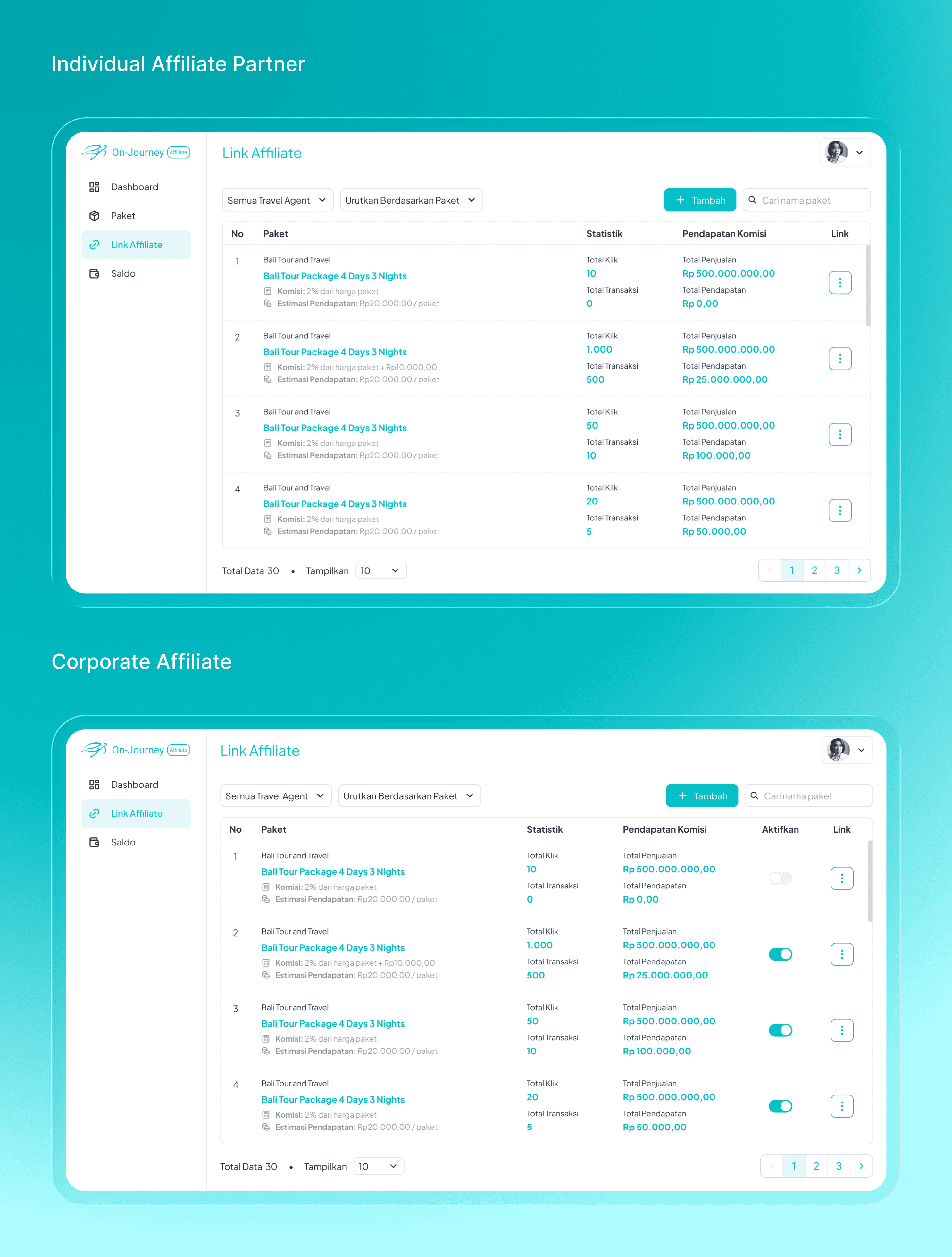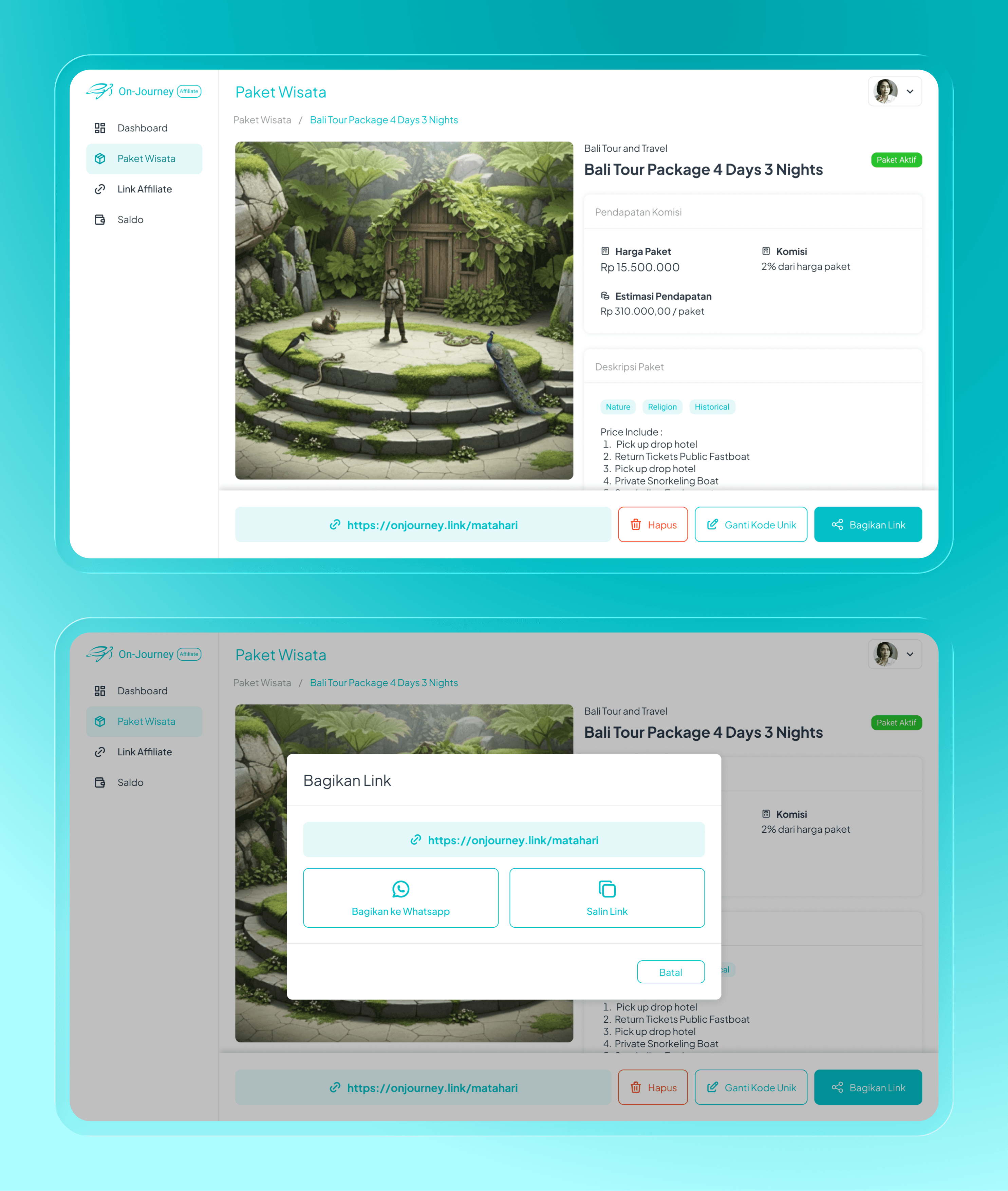 On Journey Affiliate is a travel affiliate platform that empowers partners—ranging from corporate hotels (B2B) to individual influencers (B2C)—to monetize travel package posted in the main On Journey application through commission-based links.