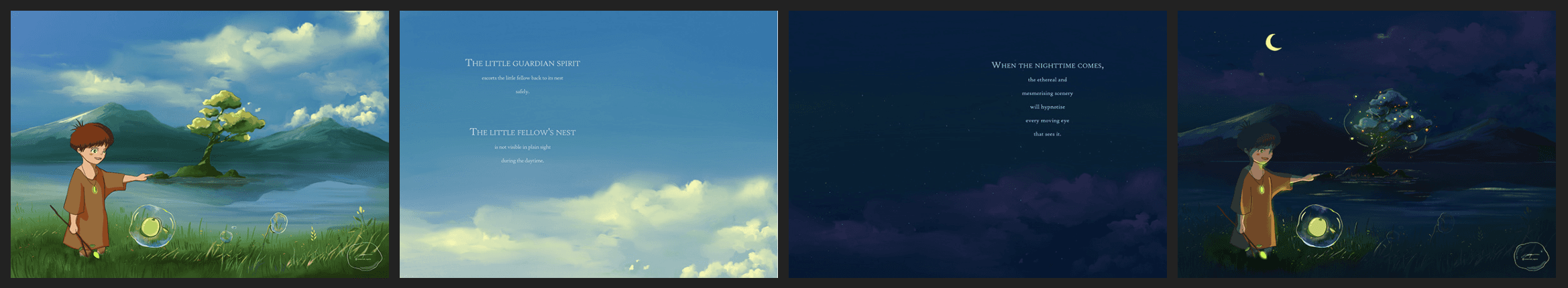 Originally planned as a storybook, but as the progress goes on, the plan has changed to make it as an animated short. The story is targeted for children, and the theme of the story is to encourage them to protect the nature and always being nice with fellow living beings.