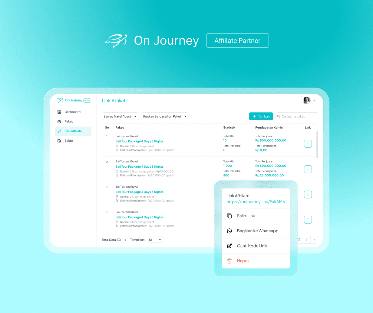 Enhances end-to-end flow and visual consistency of a travel agent affiliate link platform